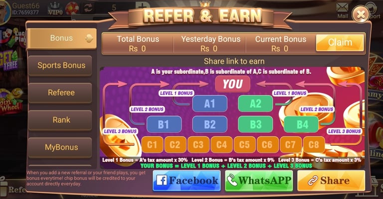 Invite your friends to join 3Patti Tiger and earn Referral Bonuses. For every friend who signs up using your referral link, you’ll receive bonus chips or cash rewards. This is a great way to grow your bankroll while sharing the fun with others.